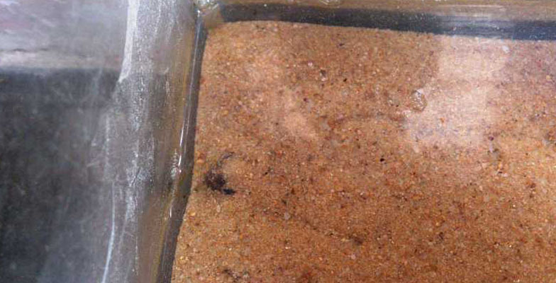 2.水砂法:此法和稀泥法雷同,不过砂的效果不如泥好,龟钻进去比较吃力,但是砂比泥干净些,此法一般只给鳄龟以及剃刀麝香之类体格强壮的龟用。方法也很简单: