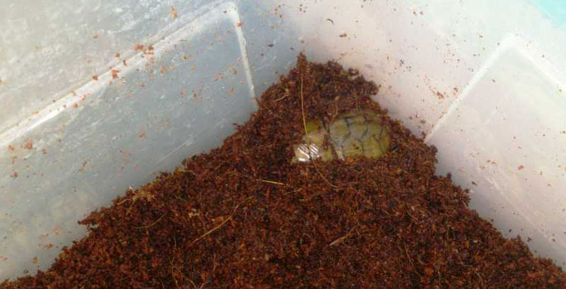3.椰土法:此法相当于干燥版的稀泥法,利用了椰土松散容易让龟钻进去的特性,比稀泥法干净容易打扫清理,但是需要经常喷水保证湿度。此法最适合半水龟,当然湿度高的话水龟也能用。